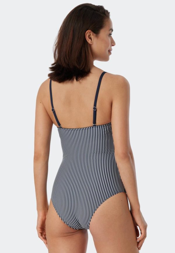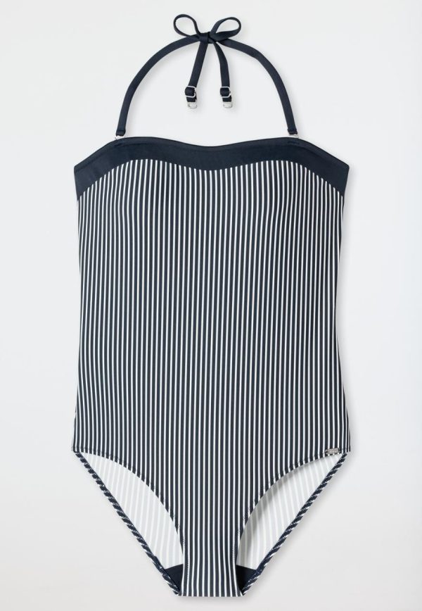 Damen Badeanzug | SCHIESSER Bandeau-Badeanzug Variable Träger Softcups Streifen Dunkelblau Ocean Dive Dunkelblau