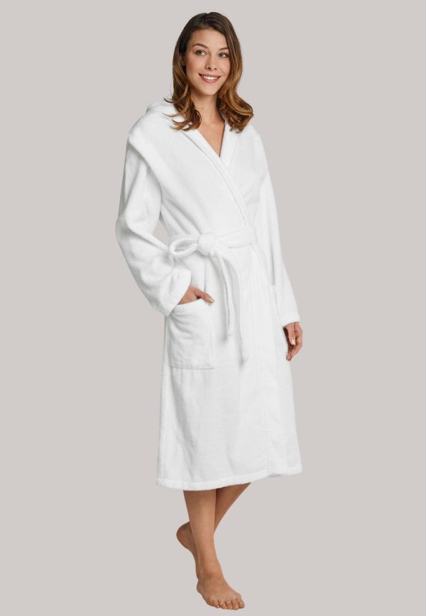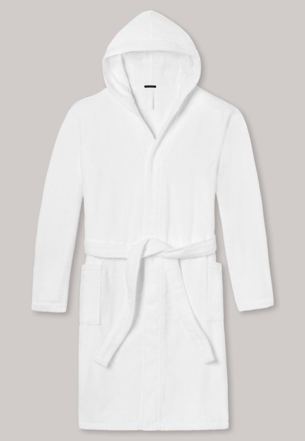 Kuschelige Basics mit Wohlfühlgarantie: Dieser weiße Damenbademantel verspricht herrlich gemütliche Stunden in bester SCHIESSER-Qualität! Große Taschen und die praktische Kapuze schenken dem Bademantel dabei eine Extra-Portion Behaglichkeit, die in weichem Frottee besonders soft auf der Haut spürbar wird. Ideal für Damen, die nach dem Bad oder am Morgen am liebsten in bester, wohliger SCHIESSER-Qualität entspannen!