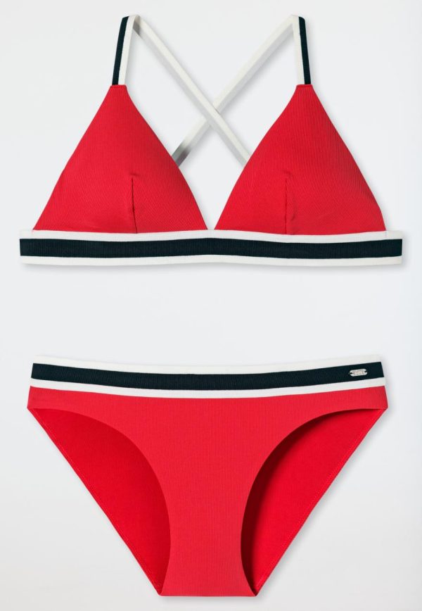 - rotes, gefüttertes Triangel-Bikini-Set für Damen in modischer Ripp-Optik
