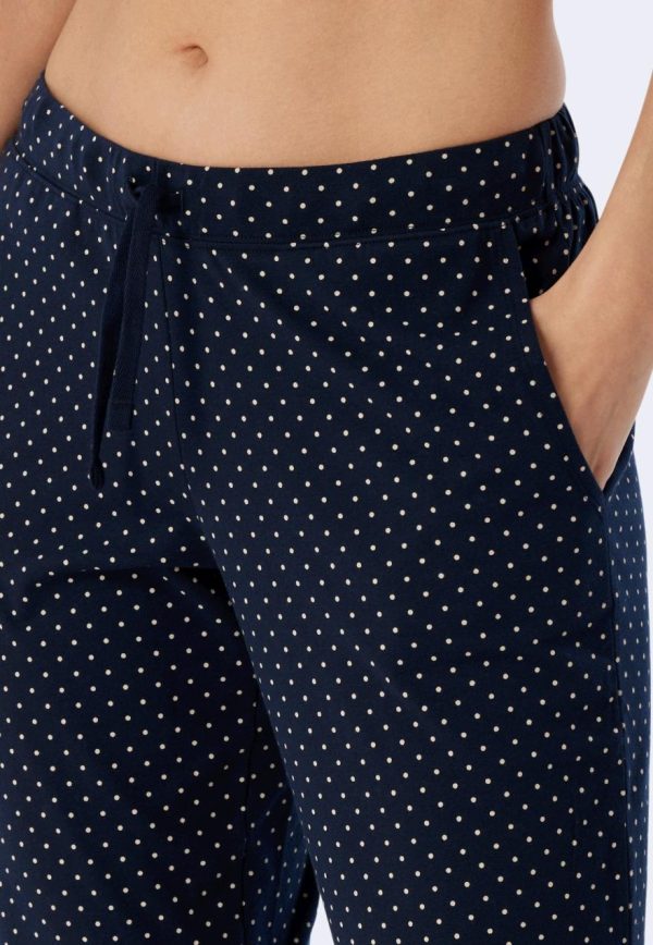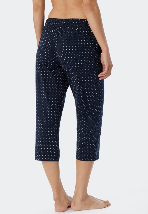 - 3/4-lange Hose für Damen mit Punkten in Weiß auf Dunkelblau