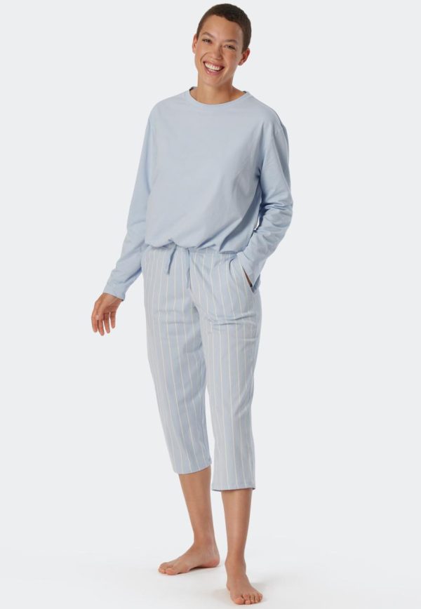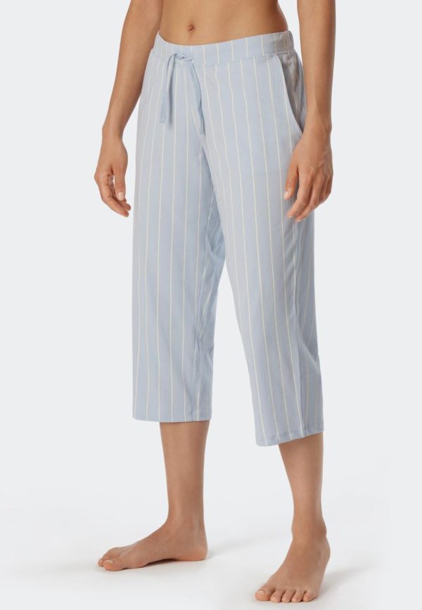 - 3/4-lange Hose für Damen mit Streifenmuster in Hellblau und Weiß
