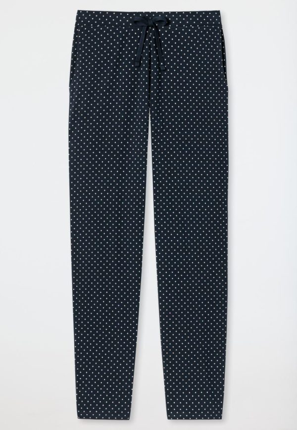 - lange Damen-Loungehose in Dunkelblau mit weißem Punkte-Alloverprint