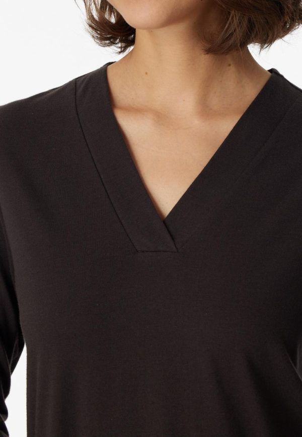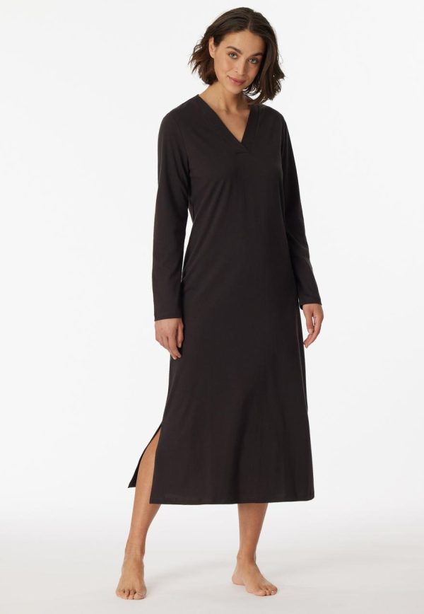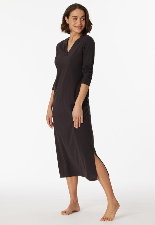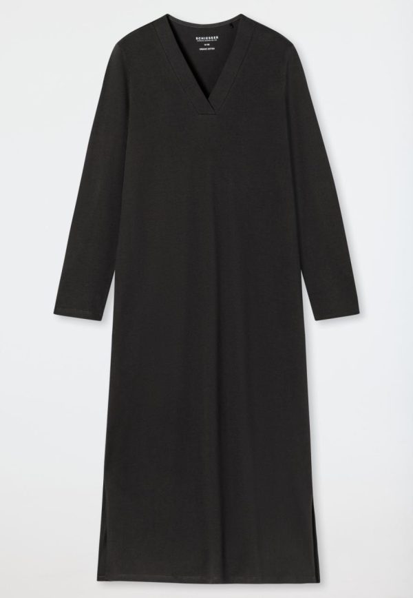 Damen Nachthemden | SCHIESSER Nachthemd Langarm Organic Cotton V-Ausschnitt Anthrazit Comfort Nightwear Anthrazit