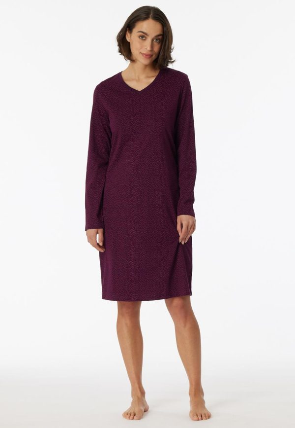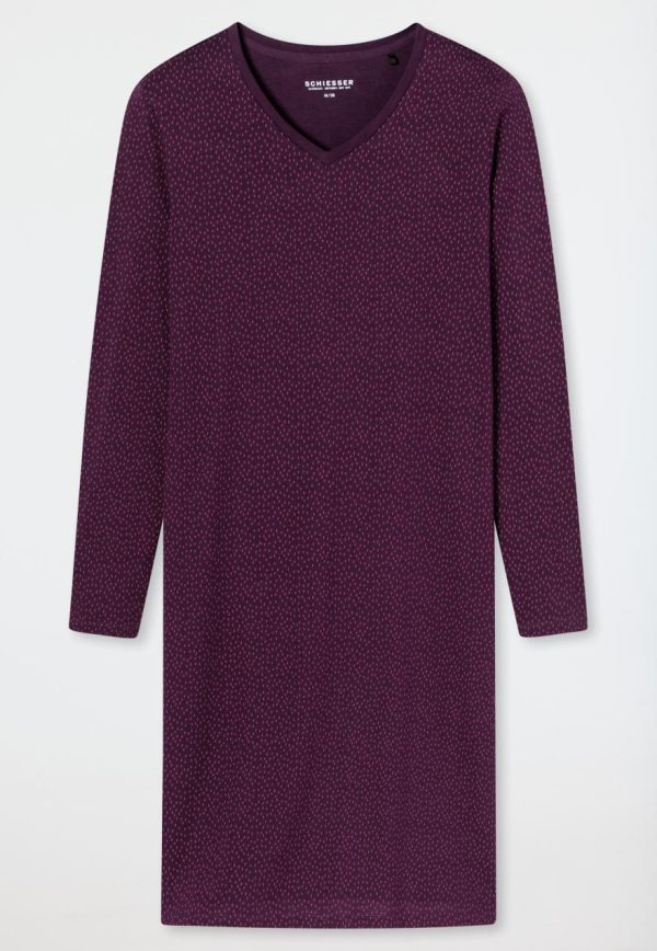 Damen Nachthemden | SCHIESSER Sleepshirt Langarm V-Ausschnitt Punkte Pflaume Comfort Essentials Pflaume