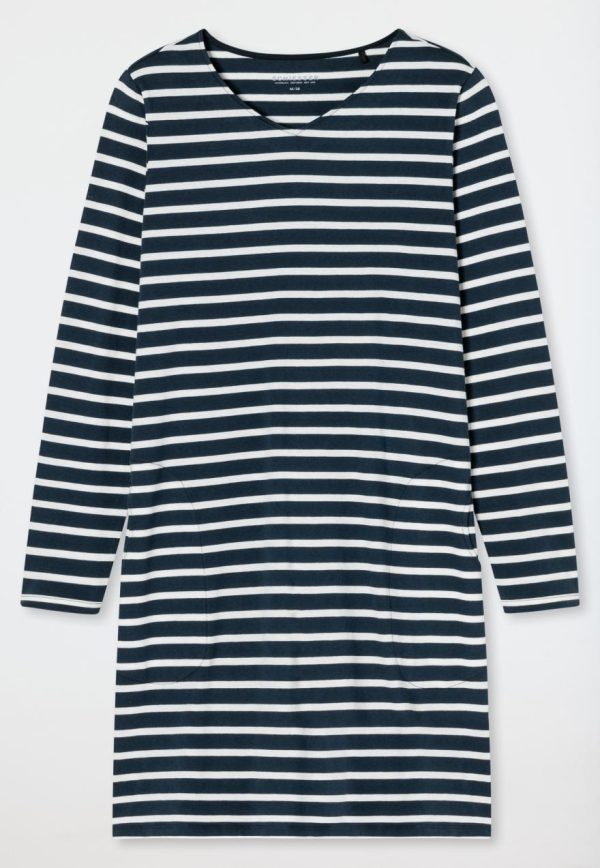 Damen Nachthemden | SCHIESSER Sleepshirt Langarm V-Ausschnitt Streifen Nachtblau Casual Essentials Nachtblau
