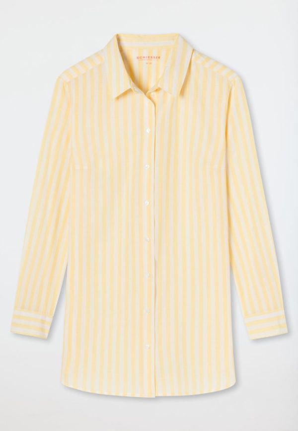Der ideale Begleiter für warme Sommernächte ist dieses langärmelige Damen-Sleepshirt! Sein lässiger Streifen-Look verleiht ihm das gewisse Etwas. Dazu passt das wunderbar klassische Design mit Hemdkragen, durchgehender Knopfleiste und Manschetten mit Knöpfen an den Armabschlüssen. Für Komfort sorgen der abgerundete Saum und die Kellerfalte an der Schulterpasse. Herrlich leichte Webware aus 100% nachhaltigem Organic Cotton macht das Wohlgefühl perfekt. Genießen Sie beste SCHIESSER-Qualität!