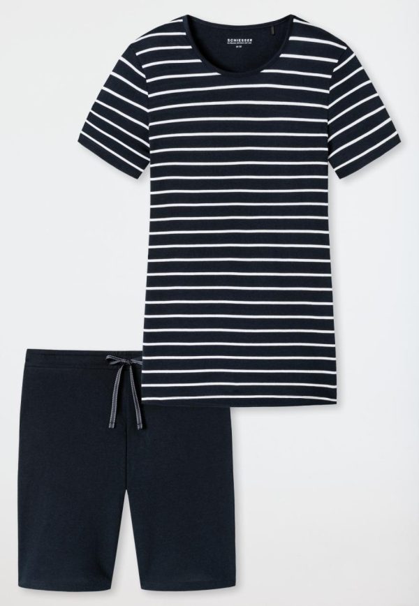 Damen Schlafanzüge | SCHIESSER Schlafanzug Kurz Ringel Nachtblau Nightwear Nachtblau