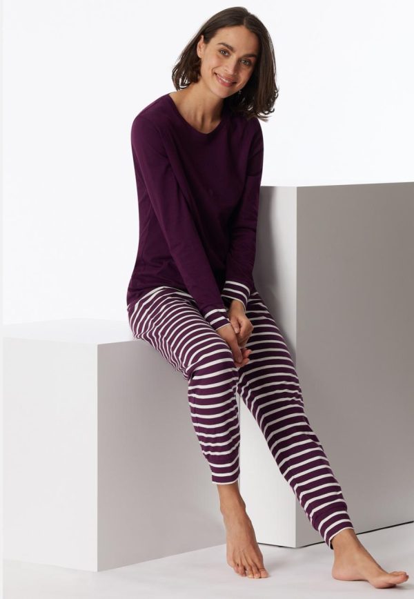 Damen Schlafanzüge | SCHIESSER Schlafanzug Lang Bündchen Pflaume Casual Essentials Pflaume