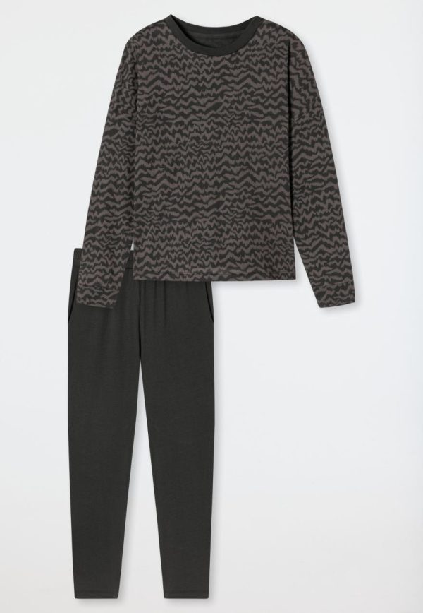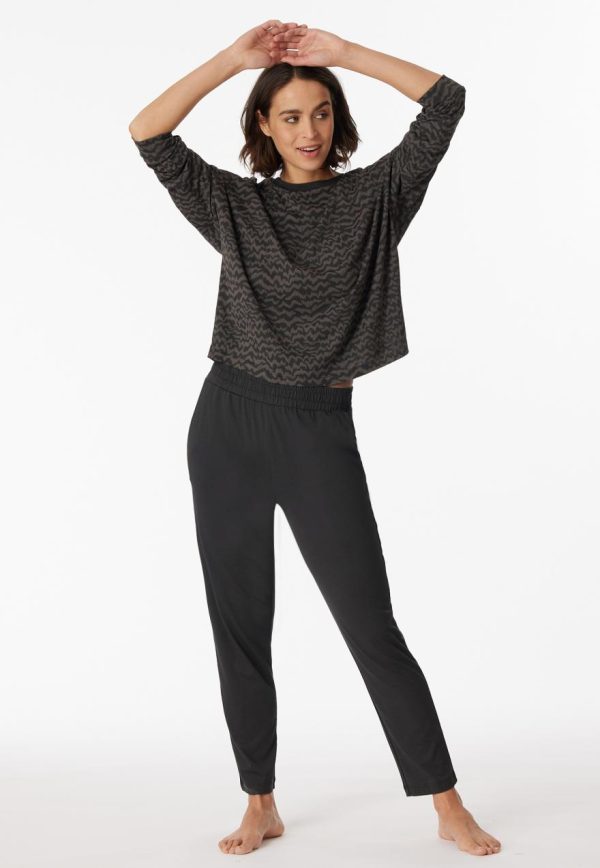 - anthrazitfarbener, 7/8-langer Damen-Schlafanzug mit Ethno-Print