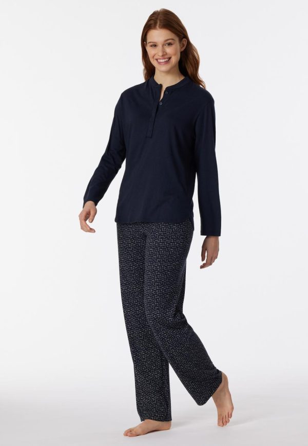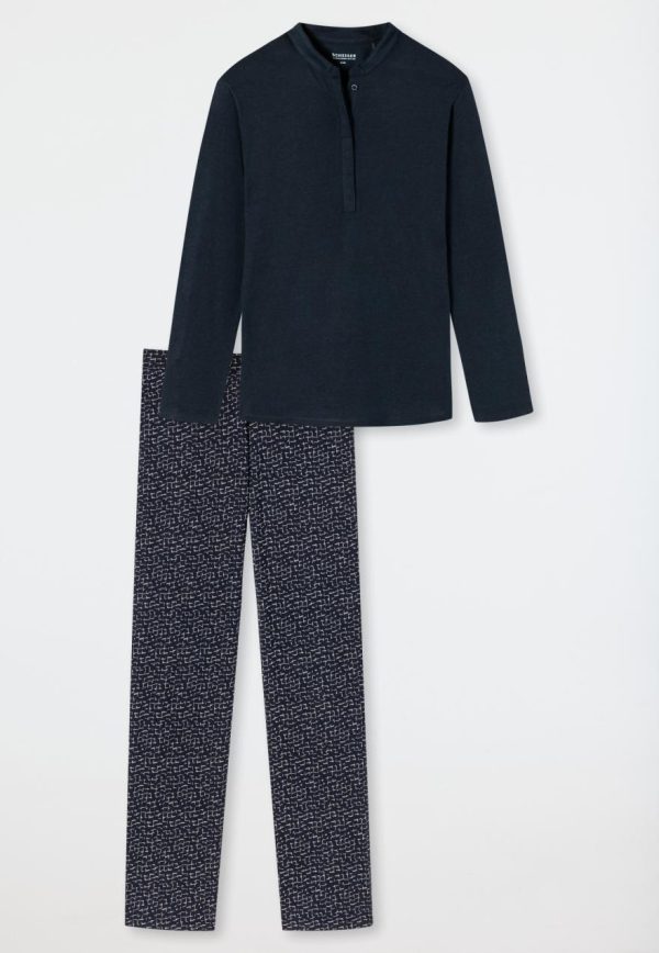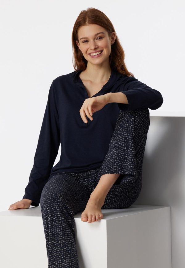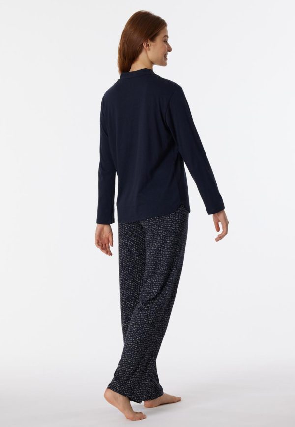 - nachtblauer, langer Damen-Schlafanzug mit Hose mit Grafikprint