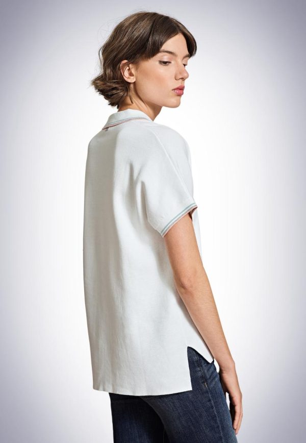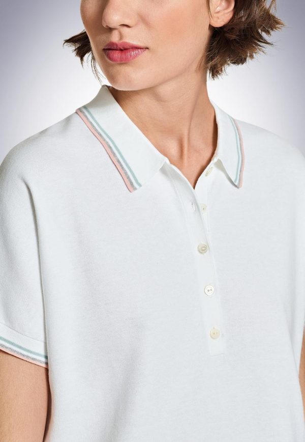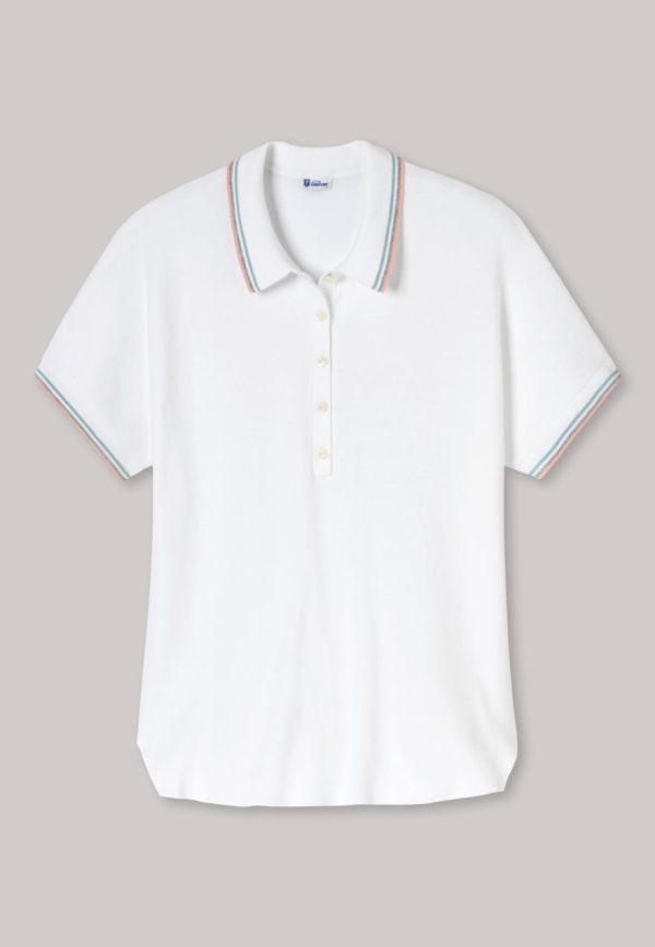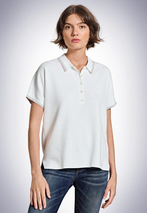 Mia – ich bin ein Poloshirt wie kein zweites. Mein Geheimnis ist wunderbar weicher Feinstrick aus 100% feinster Baumwolle mit „Dry Touch“, was dir ein besonders Hautgefühl schenkt. Mein cooler Oversized-Schnitt, ein saumloser, hinten längerer Abschluss und mehrfarbig, abgesetzte Kragen und Bündchen machen meinen sportlichen Charakter sichtbar. Wir beide könnten ein gutes Team werden – für lange Zeit und in vielen schönen Outfits!