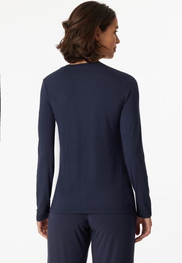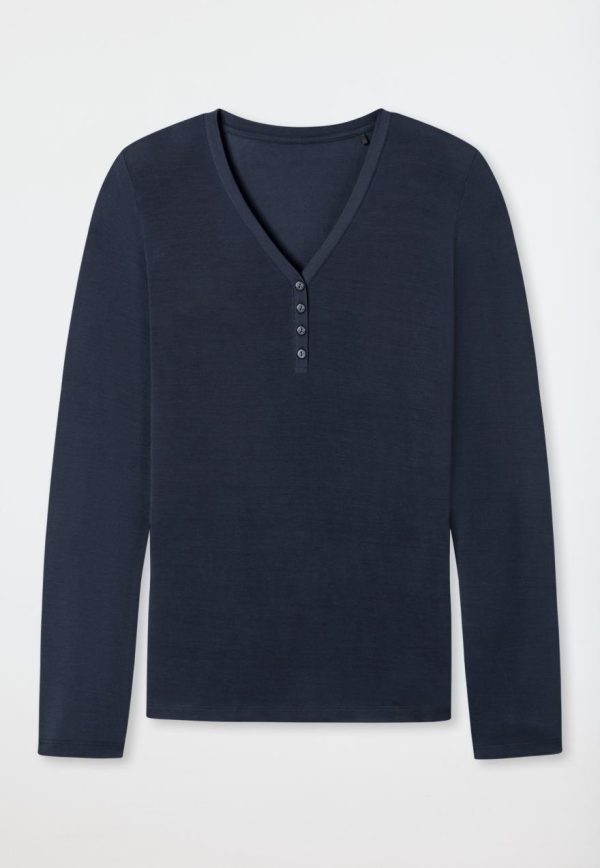 Damen Shirts | SCHIESSER Shirt Langarm Modal V-Ausschnitt Knopfleiste Blau MixRelax Blau