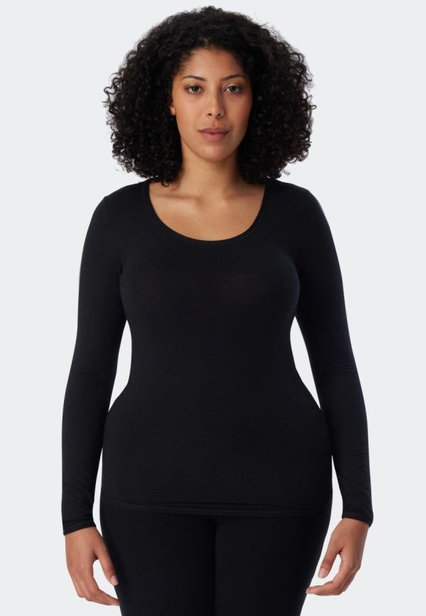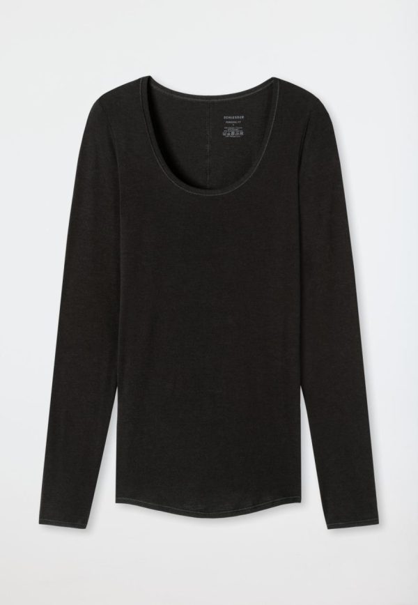 Allround-Talent zum Wohlfühlen: Dieses Damen-Langarmshirt aus der SCHIESSER-Serie „Personal Fit“ kombiniert einen puren Look mit innovativem Material. Atmungsaktiv, feuchtigkeitsregulierend und formstabil umgarnt super elastischer Single Jersey mit seidigem Glanz die Haut und passt sich dabei wie eine zweite Haut jeder Bewegung ganz harmonisch an. Genau das richtige Longsleeve für Damen, die herrlich bequeme Basics in bester, raffinierter SCHIESSER-Qualität schätzen!