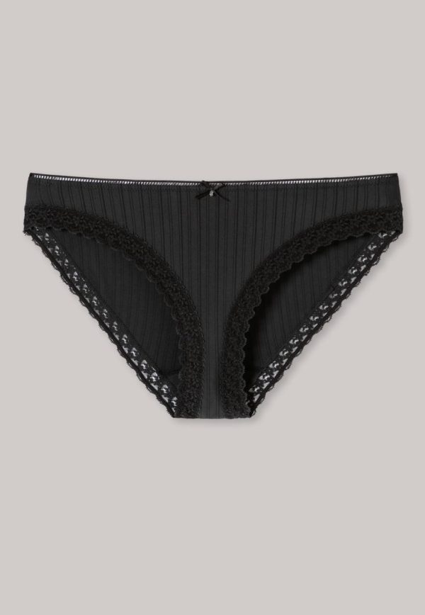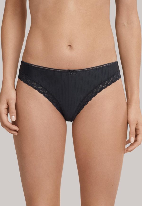 Charmante Tagwäsche: Dieser schwarze Damen-Rio-Slip wird selbst höchsten Ansprüchen an zarte, feminine Wäsche gerecht. Denn mit der elastischen, floralen Spitze am Beinbund, dem hübschen Zierband und dem Schleifchen mit schmückender Perle erhält der Slip nicht nur einen zauberhaften Charme, sondern kann in hochwertiger Microfaser auch hautnah überzeugen. Ideal für Damen, die den Tag am liebsten in wunderschöner, bester SCHIESSER-Qualität starten!