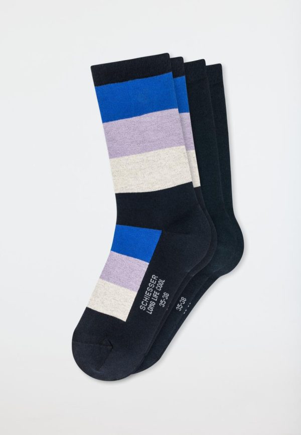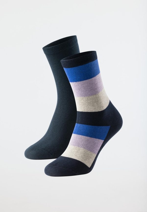 - Socken für Damen im Doppelpack: 1x Dunkelblau, 1x Ringel in Dunkelblau, Royal, Creme und Lavendel