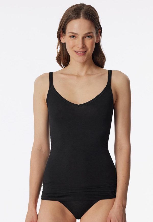 Dieses Spaghetti-Top für Damen ist Ihr Lieblings-Basic für Sport und Freizeit! Das neue Mitglied der „Personal Fit“- Familie steht für funktionales Material und einen puren Look. Der V-Ausschnitt und und die schmalen Träger schenken ihm einen femininen Touch. Elastischer Single Jersey mit Viskose liegt dabei wie maßgeschneidert an, ist atmungsaktiv und temperaturausgleichend. Ein herrlich leichtes Wäschestück mit seidigem Glanz, das jede Bewegung mitmacht: einfach beste SCHIESSER-Qualität!