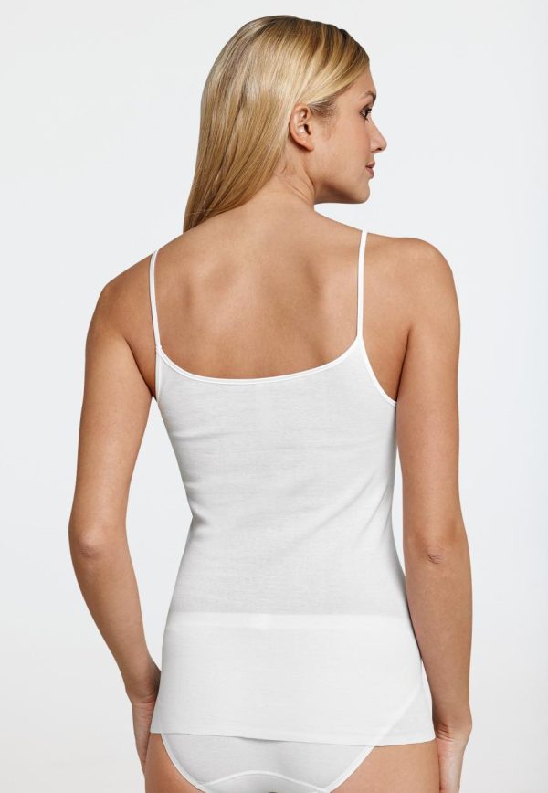 Luxuriöse Basics: Dieses weiße Spaghetti-Top aus der SCHIESSER-Serie „Luxury“ verwöhnt anspruchsvolle Damen mit herrlich softem Material im femininen Look. Seidig schimmernde Träger schenken dem Unterhemd einen ganz besonderen Charakter, der in 100% supergekämmter Mako-Baumwolle sowie mit extraflachen Saumlos-Abschlüssen sanft und außergewöhnlich leicht auf der Haut spürbar wird. Ein besonders feines Top in erstklassiger SCHIESSER-Qualität.
