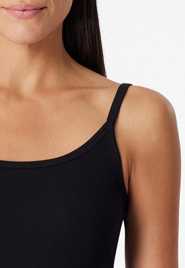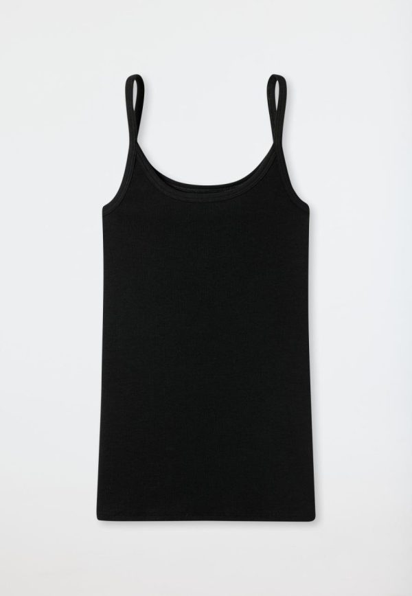 Damen Tops | SCHIESSER Spaghettitop Doppelripp Organic Cotton Schwarz Pure Rib Schwarz