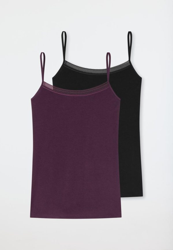 - Spaghettitops für Damen im Doppelpack,1x in Schwarz, 1x in Pflaume