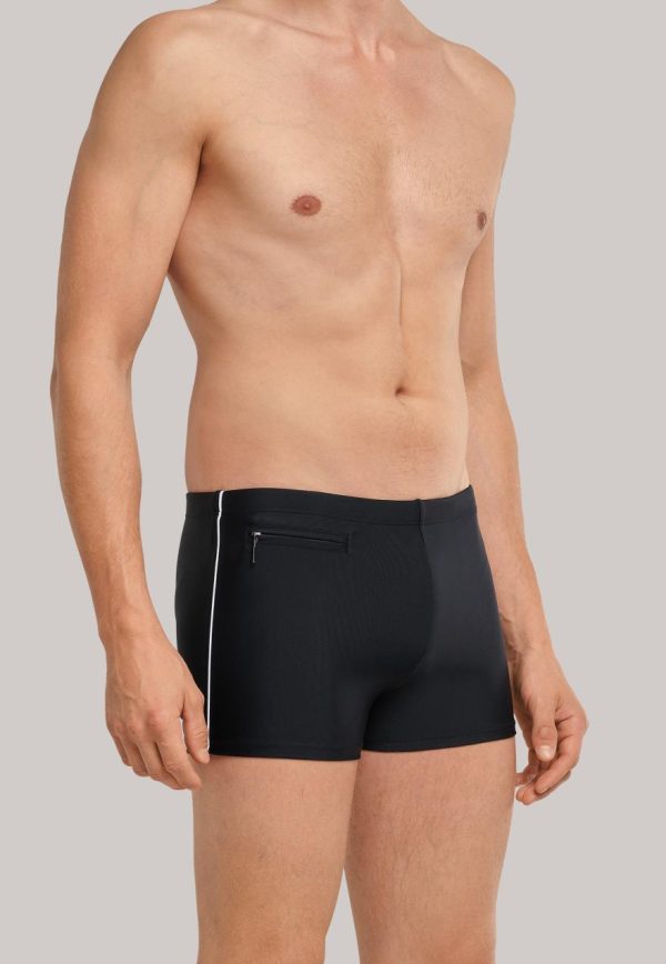 Diese körpernahen Herren-Badeshorts aus der SCHIESSER-Kollektion „Aqua“ überzeugen nicht nur mit einer optimalen Passform, sondern sind mit praktischen Details ein wahres Multitalent: In einer extra Reißverschlusstasche können Kleingeld oder ein Schlüssel sicher verstaut werden. Das Material aus recycelter Wirkware ist besonders formbeständig und fühlt sich angenehm weich auf der Haut an – perfekt sitzend in bester SCHIESSER-Qualität.