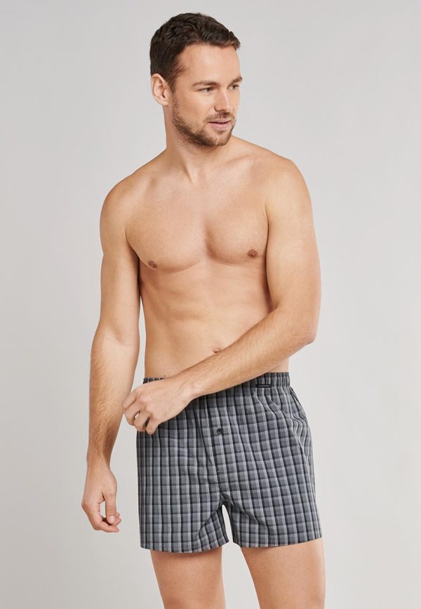 Diese beiden Herren-Boxershorts aus 100% soft gewebter Baumwolle zeichnet neben hohem Tragekomfort auch ein lässiger Look aus. Schwarze, hellgraue und weiße Töne im Karomuster weist das eine Modell auf, das zweite überzeugt in der dezenten, schwarz-weißen Ringel-Variante. Die Knopfleiste mit sichtbarem Knopf setzt ein funktionales Detail, der angenehme Bund sorgt den ganzen Tag über für komfortablen Halt. Ein maskuliner und bequemer Wäsche-Doppelpack in bester SCHIESSER-Qualität!
