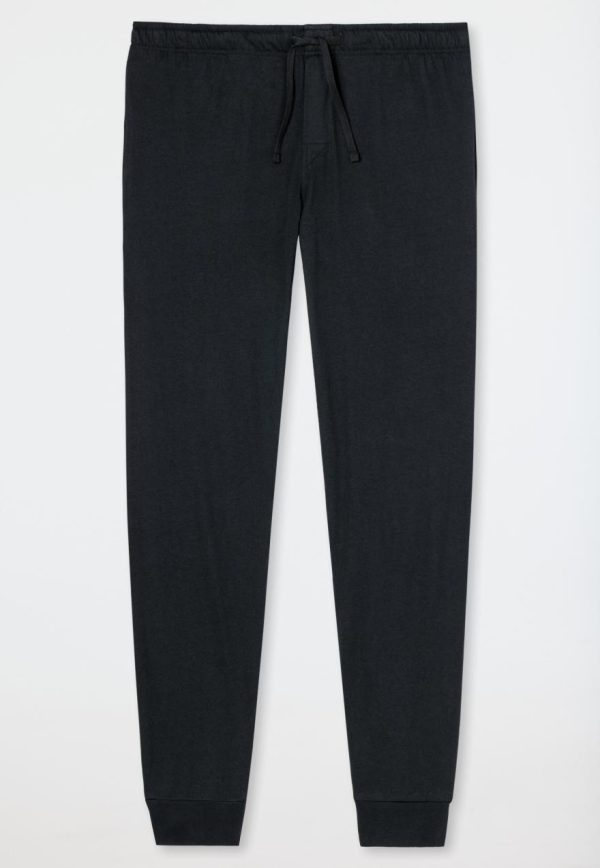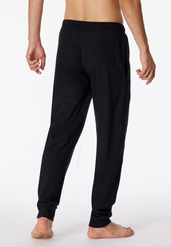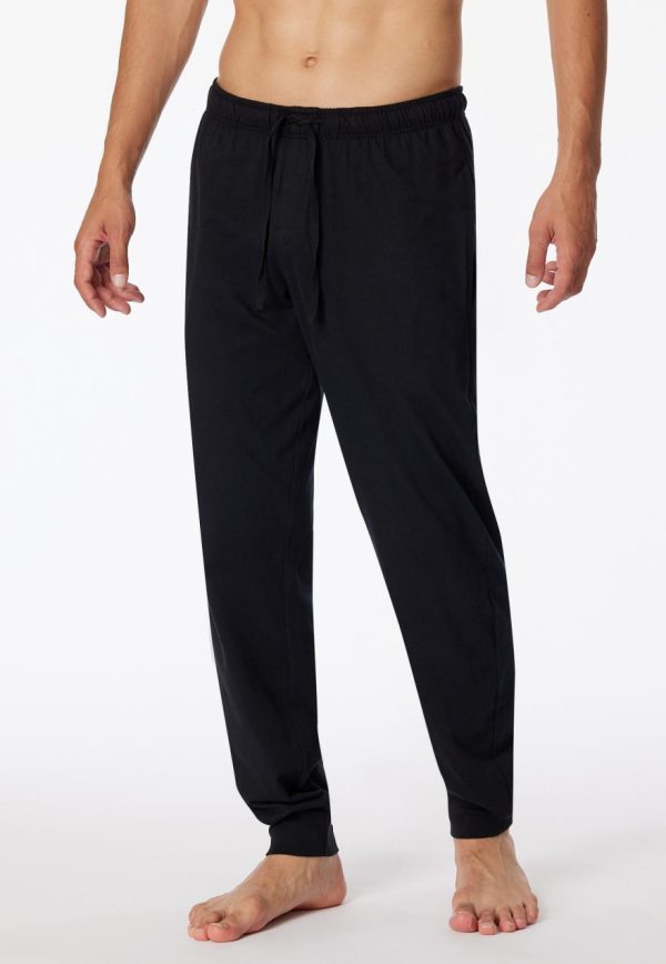 Ob zum Entspannen oder Schlafen, diese schwarze Herrenhose ist immer die richtige Wahl! Die lockere Jogginghose überzeugt durch ihr weiches Jersey-Material aus 100 % Baumwolle und ist mit seitlichen Taschen sowie einer funktionalen Knopfleiste ausgestattet. Das tonale Bindeband am elastischen Bund und die Bündchen-Abschlüsse am Bein setzen weitere, praktische Details. Ein bequemes Basic in bester SCHIESSER-Qualität!