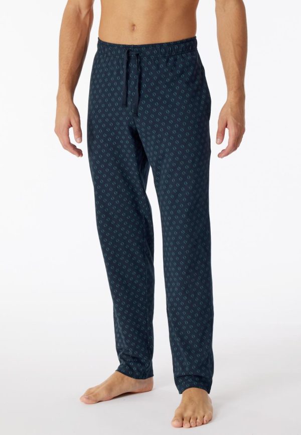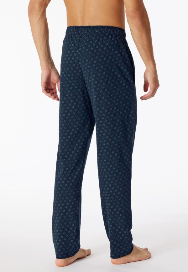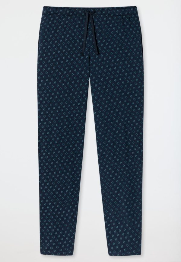 - lange, nachtblaue Herren-Loungehose mit petrolfarbenem Grafikmuster