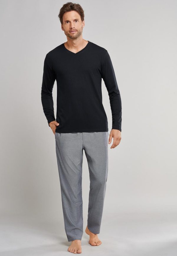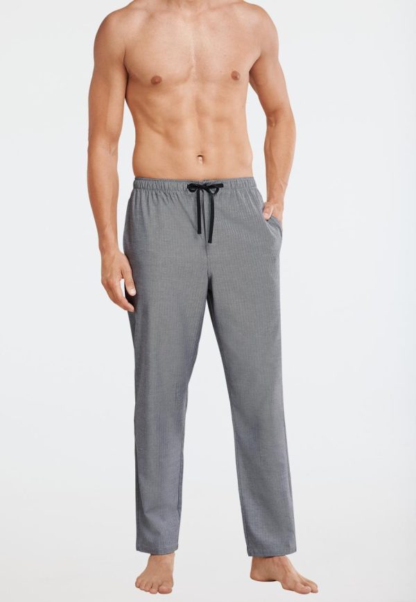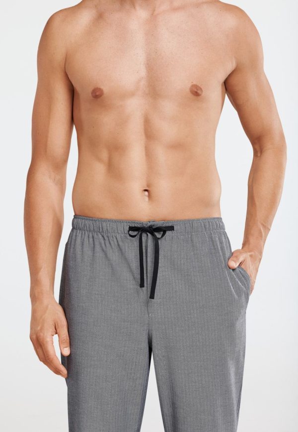 Ein modisches Fischgrat-Muster in Schwarz macht diese Herren-Loungehose zum stilsicheren Relax-Partner! Ob an entspannten Tagen und in erholsamen Nächten, in ihrer lockeren Passform und dank 100 % fein gewebter Baumwolle ist die Hose jederzeit eine gute Wahl. Mit dem Bindeband am elastischen Bund, einer verdeckten, funktionalen Knopfleiste und seitlichen Taschen bekommt sie praktische Details. Maskulin, komfortabel und in bester SCHIESSER-Qualität!