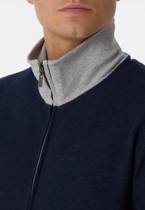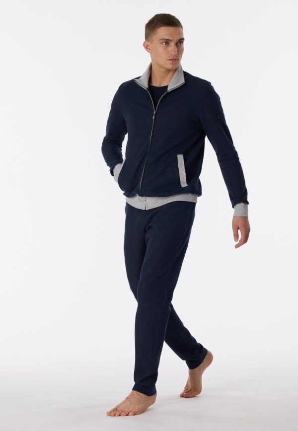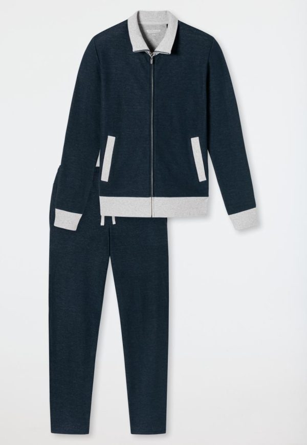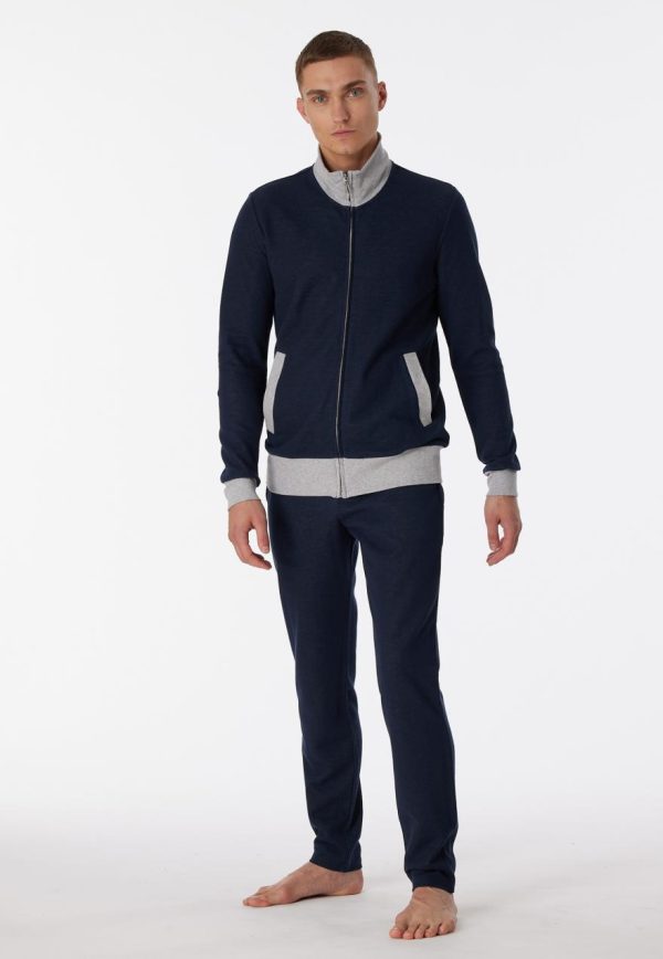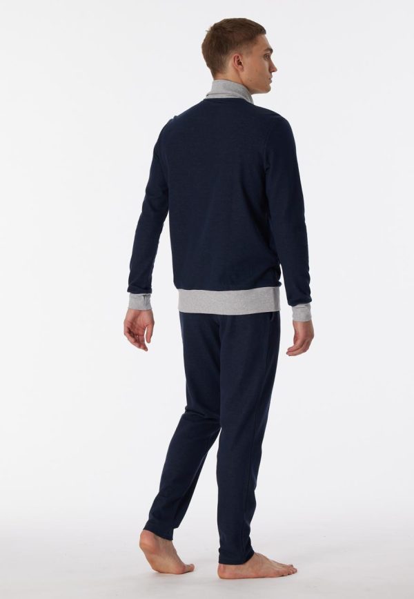 - langer, nachtblauer Herren-Hausanzug mit grau-melierten Details