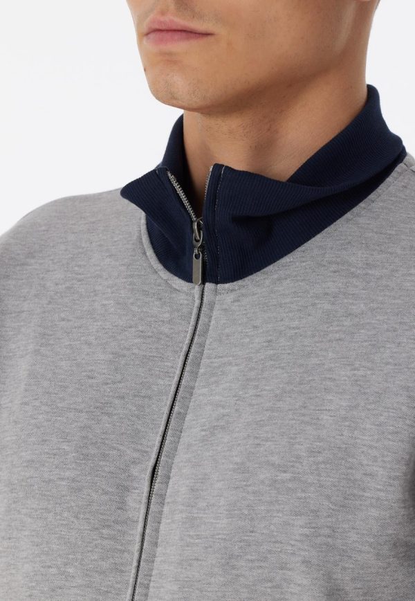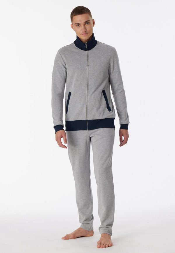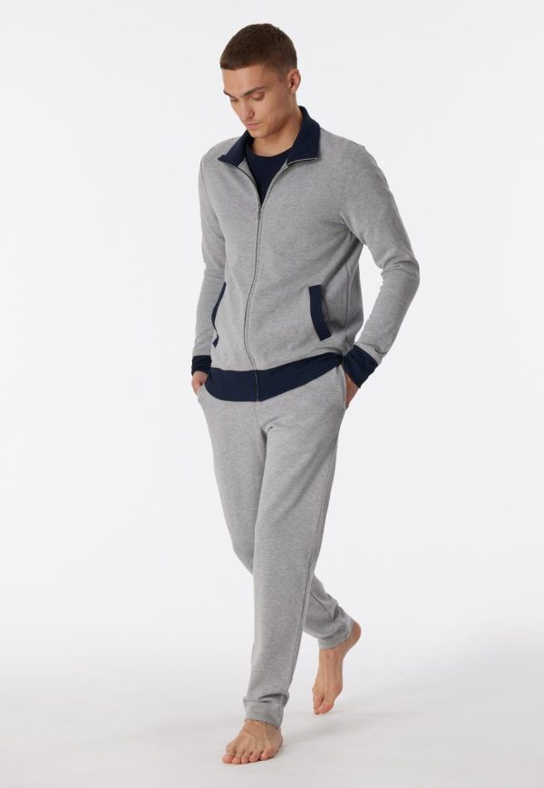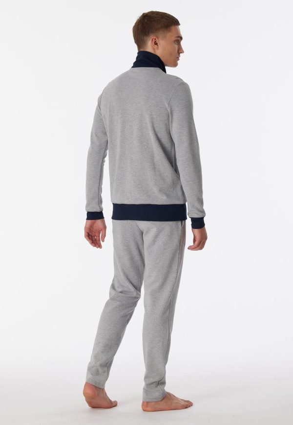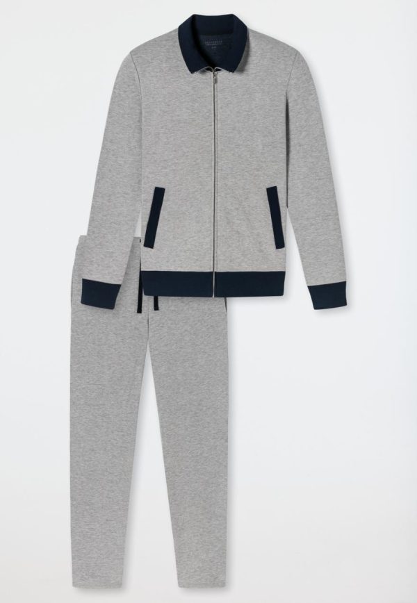 - langer, grau-melierter Herren-Hausanzug mit nachtblauen Details