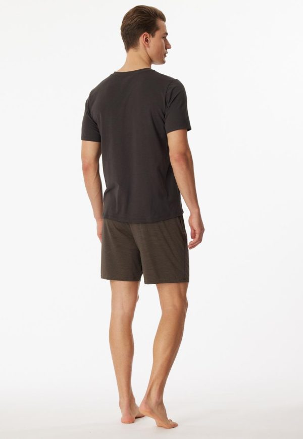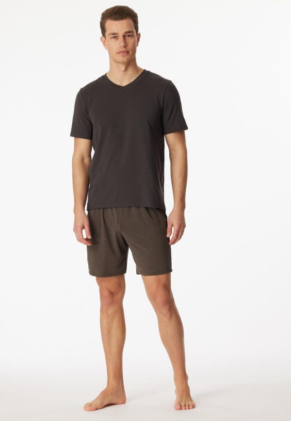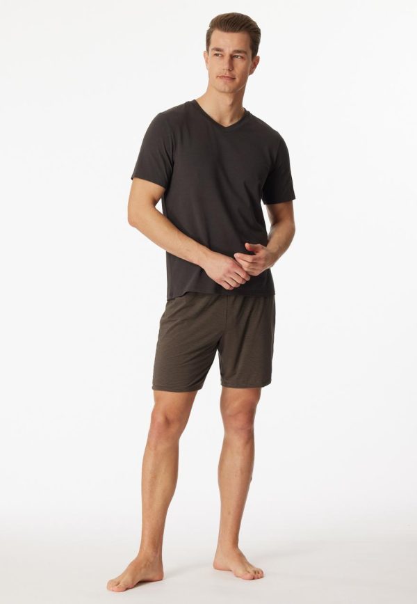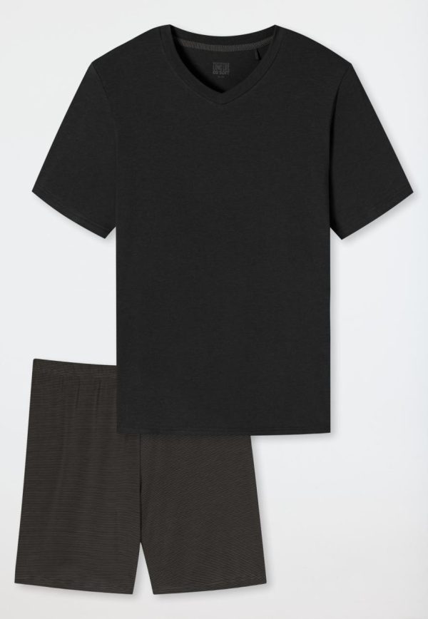 Herren Schlafanzüge | SCHIESSER Schlafanzug Kurz Modal V-Ausschnitt Ringel Anthrazit Long Life Soft Anthrazit