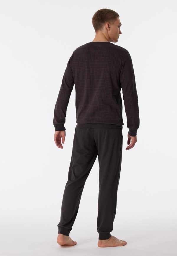 - langer Herren-Schlafanzug mit kariertem Oberteil in Anthrazit und Terracotta