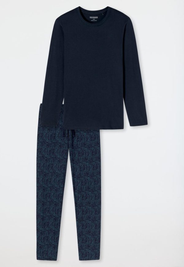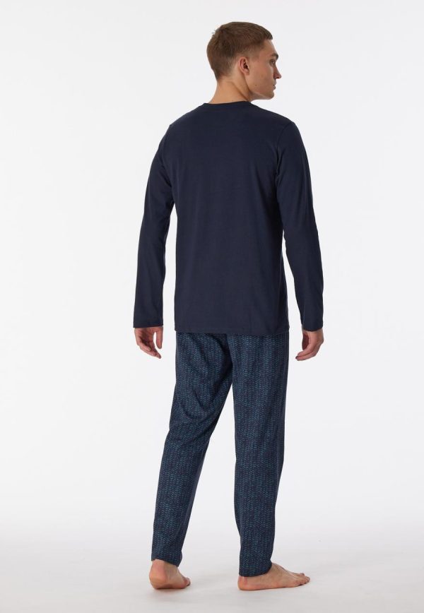 - langer, nachtblauer Herren-Schlafanzug mit gemusterter Hose in Nachtblau und Petrol