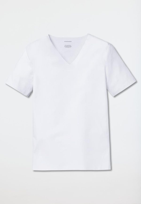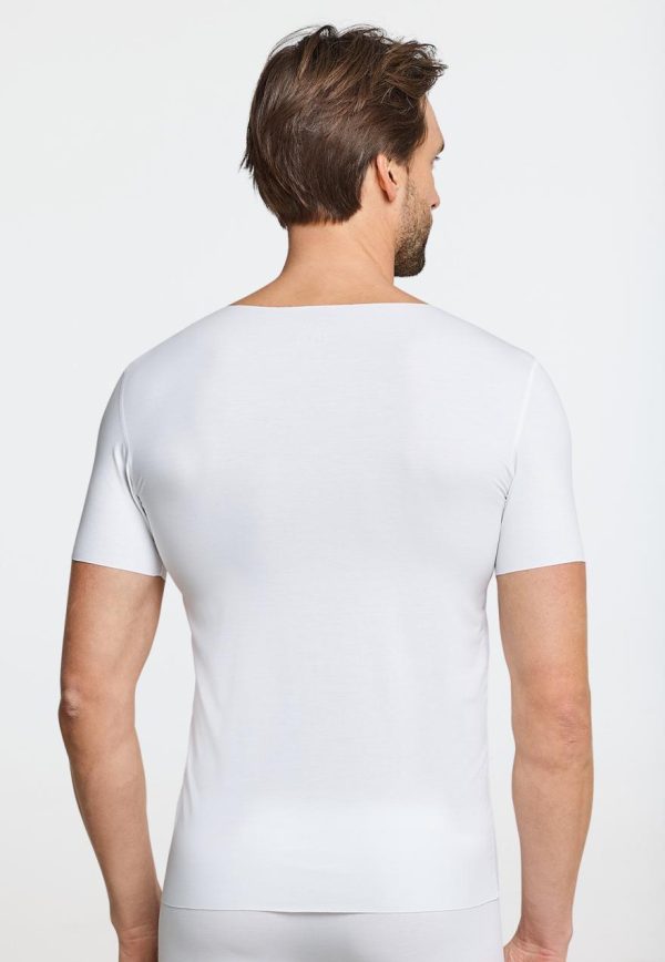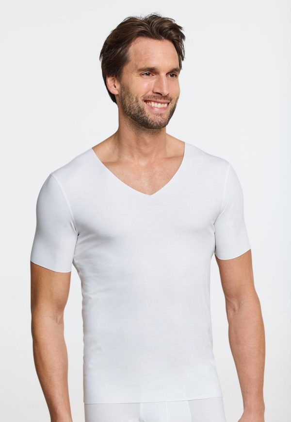 Herren Shirts | SCHIESSER Shirt Interlock Seamless Kurzarm V-Ausschnitt Weiß Laser Cut Weiss