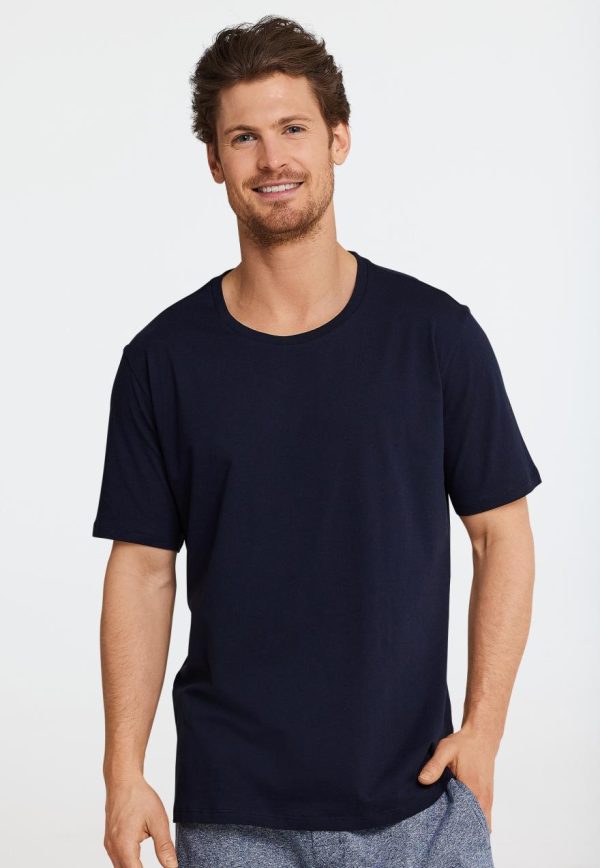 100 % reine, weiche Baumwolle und ein lässiger Schnitt – mehr braucht es nicht, um aus einem simplen Basic ein neues Lieblingsstück zu machen! So, wie bei diesem dunkelblauen Kurzarmshirt für Herren. Das T-Shirt lässt sich mit seinem runden Halsausschnitt ganz unkompliziert kombinieren und verspricht in weichem Single Jersey hohen Tragekomfort. Ideal für entspannte Tage und Nächte in bester SCHIESSER-Qualität!