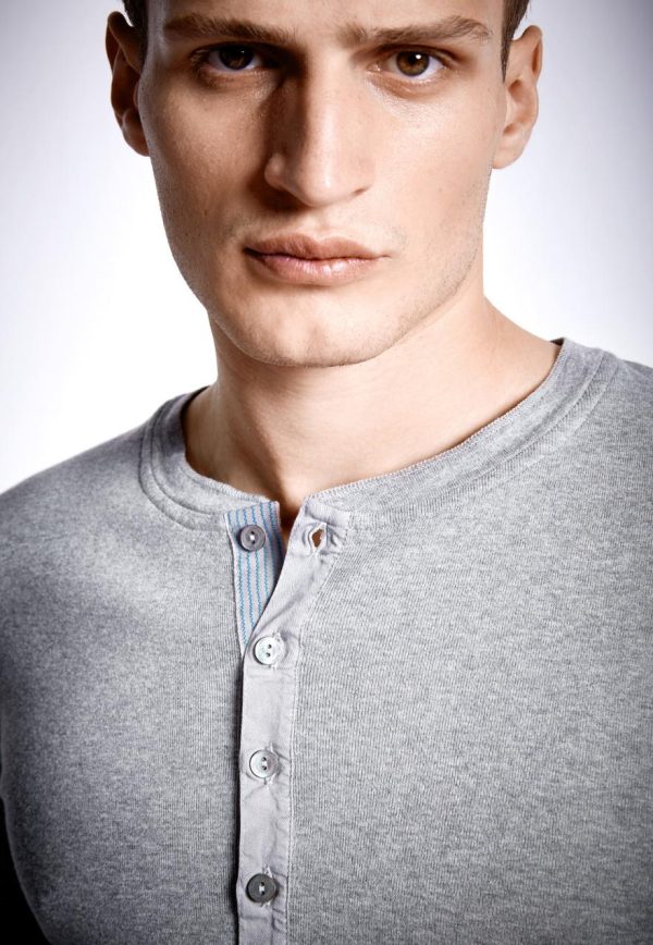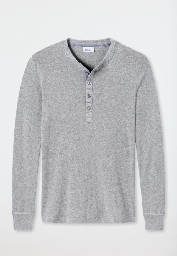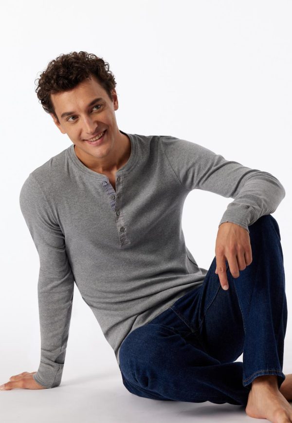 - grau meliertes Langarm-Henley für Herren