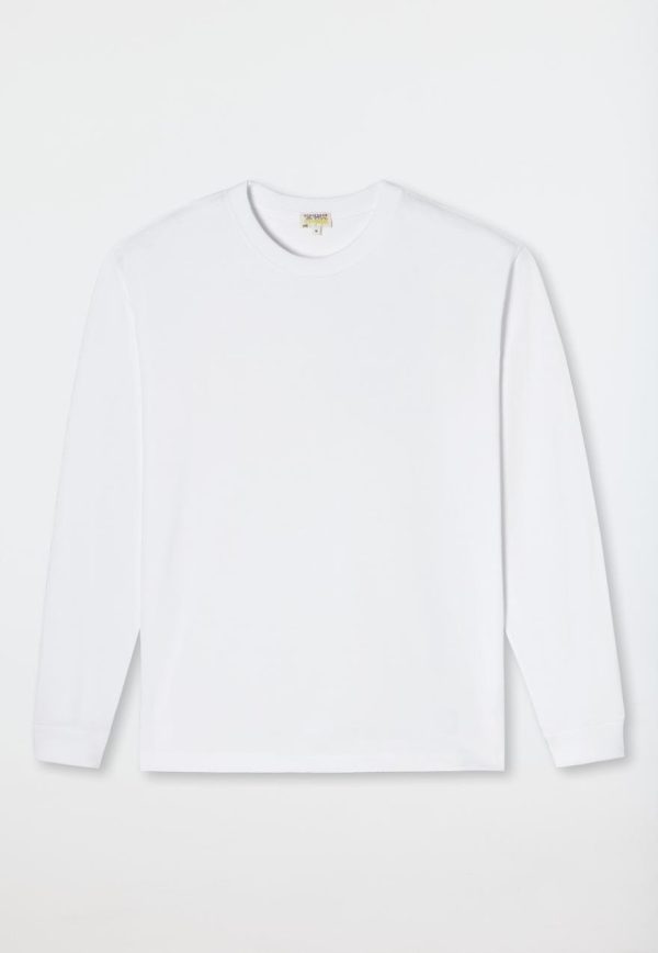 - weißes Langarmshirt für Herren mit rundem Halsausschnitt