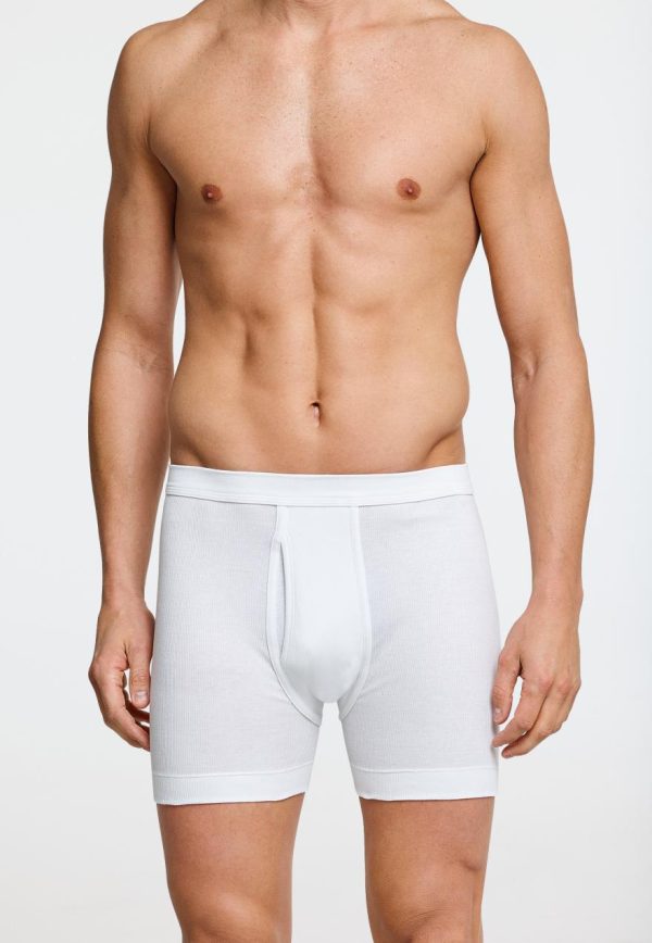 Klassische Tagwäsche mit Komfort-Garantie: Diese weiße, kurze Herrenunterhose überzeugt durch ein besonders langlebiges, strapazierfähiges Material und einen maskulinen Charakter. 100% supergekämmte Baumwolle in Doppelripp-Qualität und der Softbund fühlen sich dabei angenehm weich an auf der Haut und bleiben auch nach der 95-Grad-Wäsche in Topform. Die ideale Tagwäsche für Herren, die höchsten Tragekomfort in gewohnt bester SCHIESSER-Qualität schätzen.