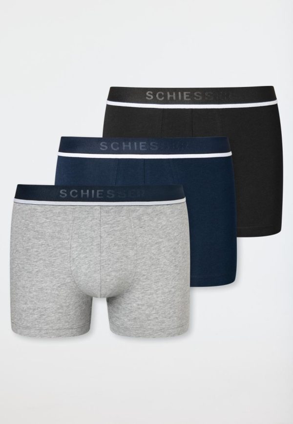 Sportlich schick im preisstarken Dreierpack! Diese modischen Herren-Shorts aus der beliebten „95/5“ Serie stehen für erstklassigen Tragekomfort. Ob in Schwarz, Blau oder Grau-Melange – mit ihrem komfortablen Logo-Webgummibund sitzen die Pants jederzeit perfekt am Körper. Das elastische Single Jersey-Material aus 95% natürlichem Organic Cotton und 5% Elastan fühlt sich besonders angenehm auf der Haut an. Eine rundum bequeme Tagwäsche für alle, die auf bewährt beste SCHIESSER-Qualität setzen!