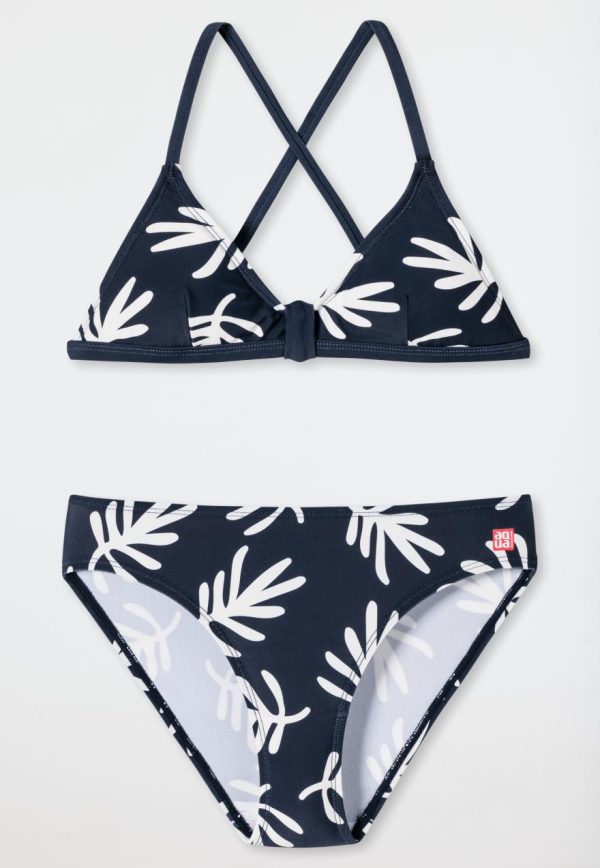 - Bustier-Bikini in Dunkelblau mit Allover-Muster aus Palmenblättern
