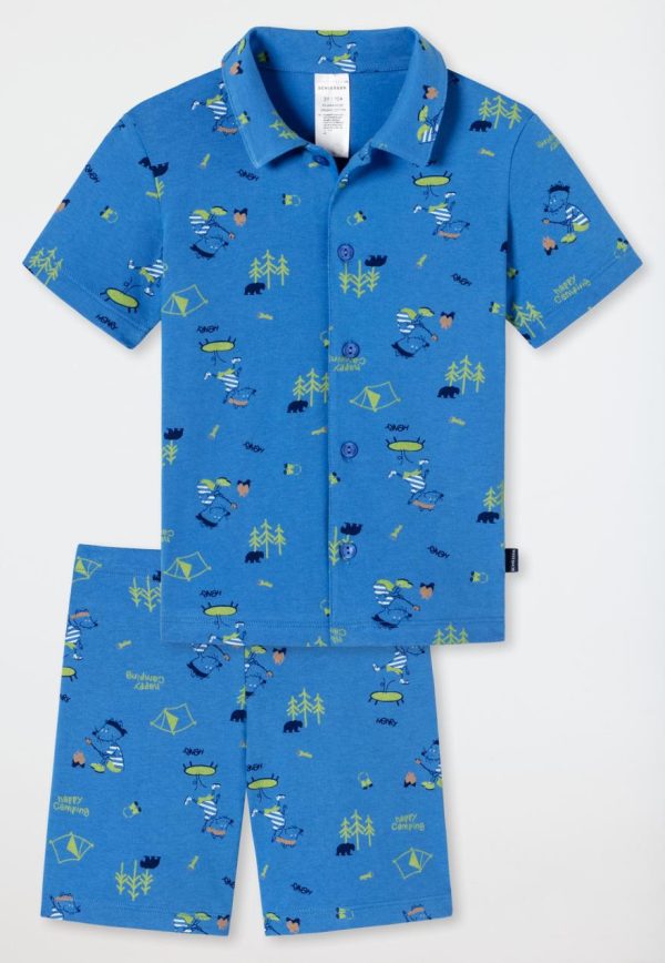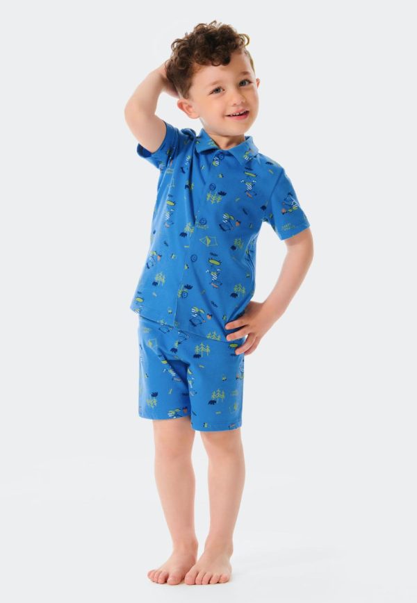 - kurzer Pyjama für Jungen in Blau mit Rat Henry und Camping-Allover