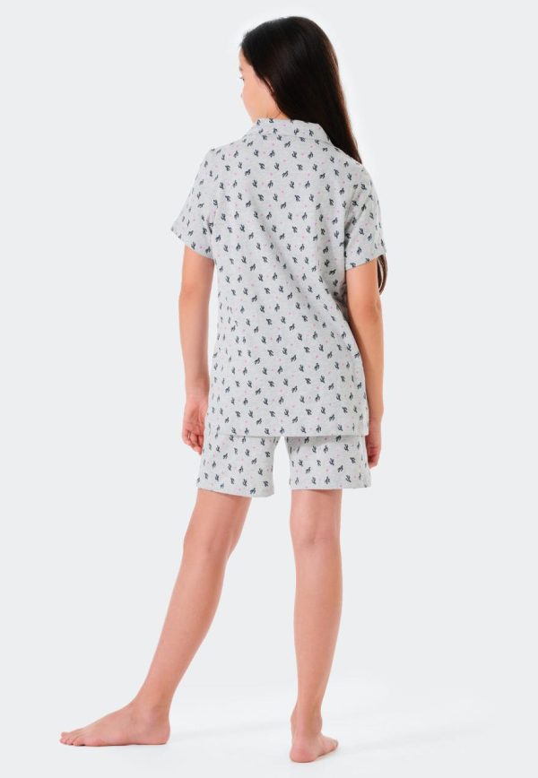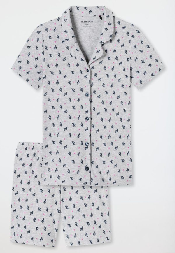 - kurzer, gemusterter Pyjama für Mädchen mit Kakteen und Herzen in Grau-Melange