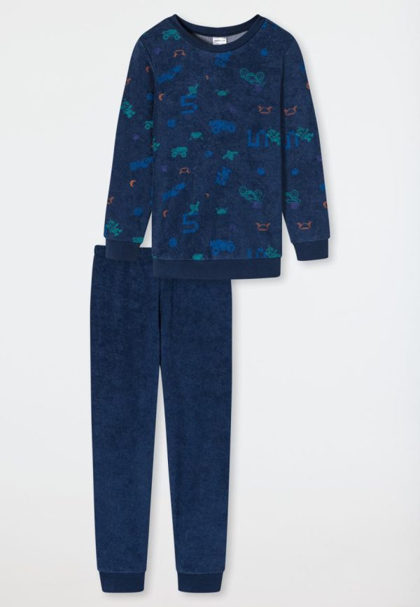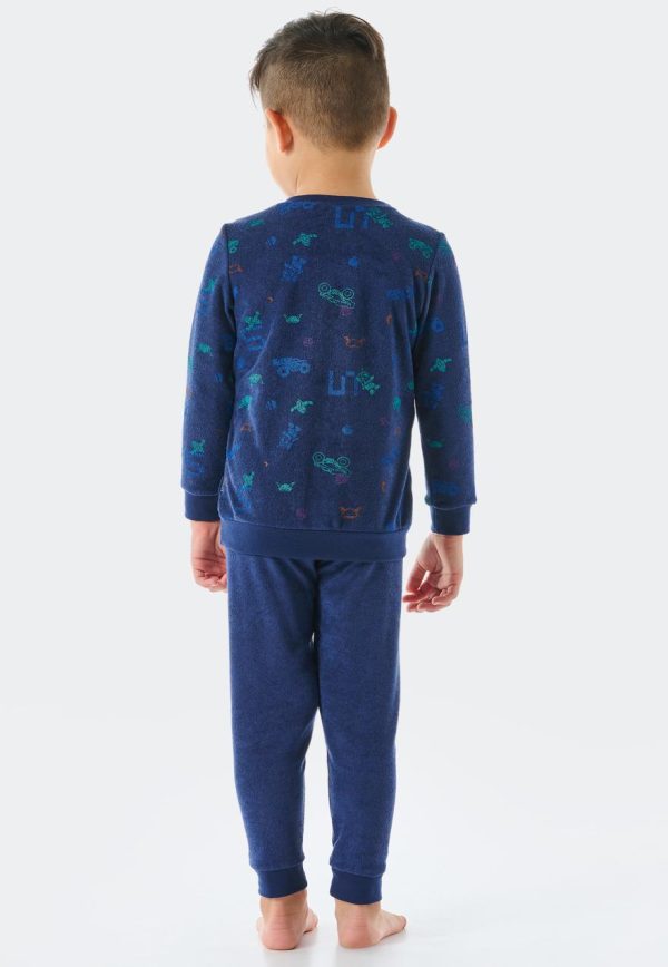 Kinder Nachtwäsche | SCHIESSER Schlafanzug Lang Frottee Organic Cotton Bündchen Weltraum-Fahrzeuge Dunkelblau Boys World Dunkelblau