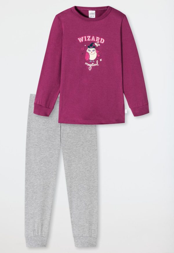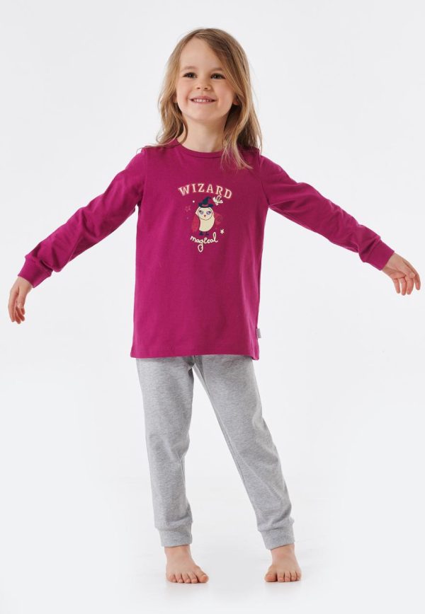 Kinder Nachtwäsche | SCHIESSER Schlafanzug Lang Organic Cotton Bündchen Eule Zauberei Beere Cat Zoe Beere