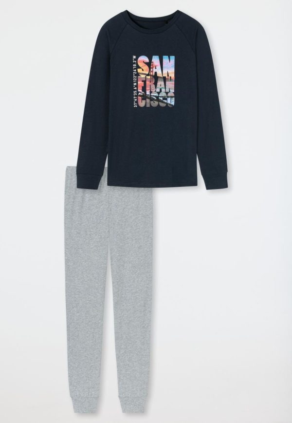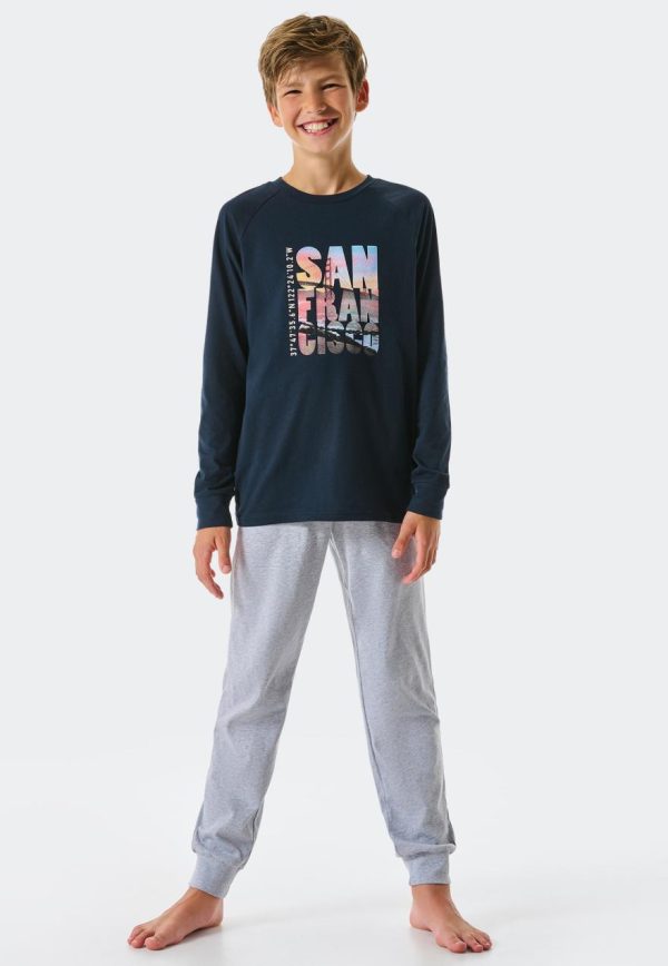 Kinder Nachtwäsche | SCHIESSER Schlafanzug Lang Organic Cotton Bündchen San Francisco Nachtblau Teens Nightwear Nachtblau