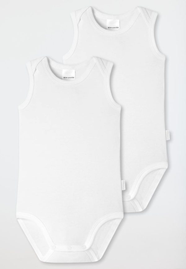 - weiße Unisex-Babybodys ohne Arm im praktischen Doppelpack