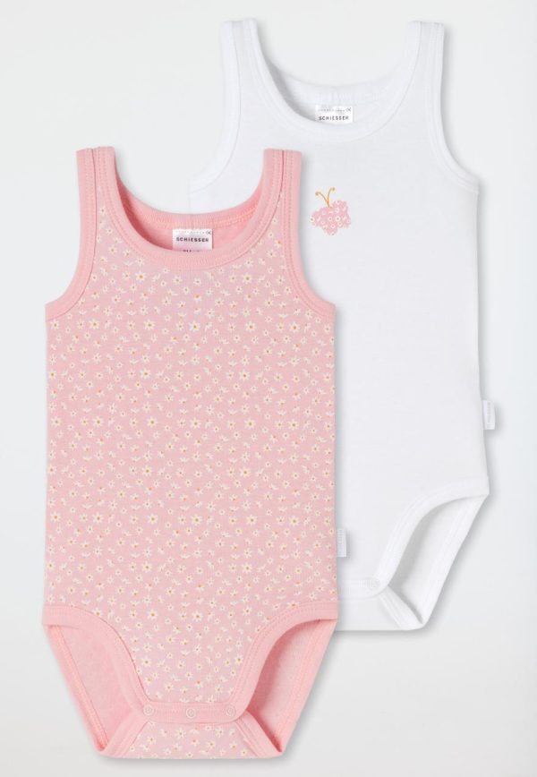 Diese ärmellosen Babybodys für Mädchen sorgen gleich im Doppelpack für Sommerlaune! Das hochwertige Feinripp-Material aus 100% Organic Cotton fühlt sich besonders natürlich und weich auf der empfindlichen Kinderhaut an. Ob in Rosa mit Blumen-Allover oder in Weiß mit Schmetterling auf der Brust – dieses Tagwäsche-Duo ist einfach nur bezaubernd. Dank hochwertiger Druckknöpfe im Schritt ist das Umziehen und Wickeln ein echtes Kinderspiel. Für kleine Sonnenscheine in bester SCHIESSER-Qualität!