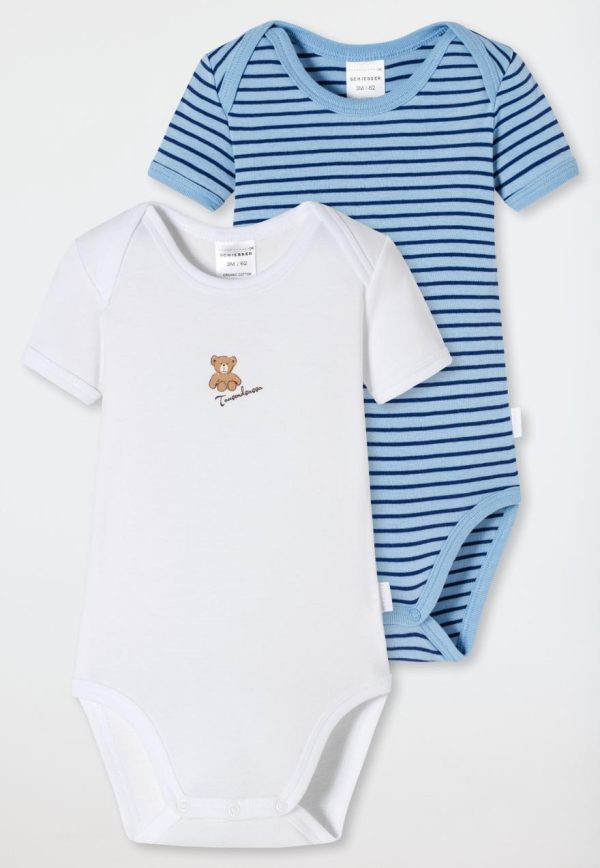Kinder Unterwäsche | SCHIESSER Babyodys Kurzarm er-Pack Feinripp Organic Cotton Ringel Bärchen Mehrfarbig Natural Love Sortiert