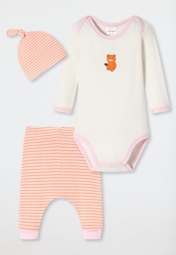 - Langarmbody in Weiß mit rosa-farbenen Einfässen und kleinem Bärchen mit Herz mittig auf der Brust