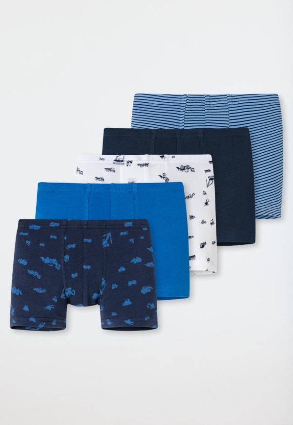 Bei diesen starken Shorts im praktischen 5er-Pack kommt jeder kleine Baumeister auf seine Kosten! Ob mit coolen Bagger-Motiven, unifarben in tollen Blautönen oder fröhlich geringelt – diese Tagwäsche sorgt für strahlende Jungenaugen. Elastisches Single-Jersey-Material aus hautfreundlichem Organic Cotton und ein extra bequemer Softbund fühlen sich perfekt am Körper an und sorgen für ein rundum herrliches Tragegefühl. Für die ganz großen Abenteuer in bester SCHIESSER-Qualität!
